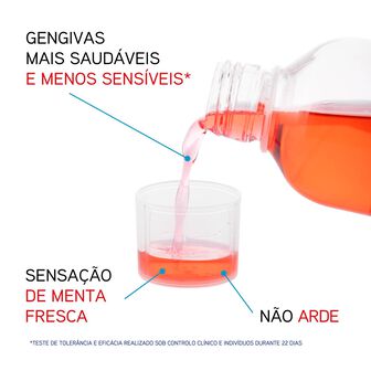 Duas vezes por dia, após a escovagem dos dentes, bochechar com 15 ml durante 30 segundos.