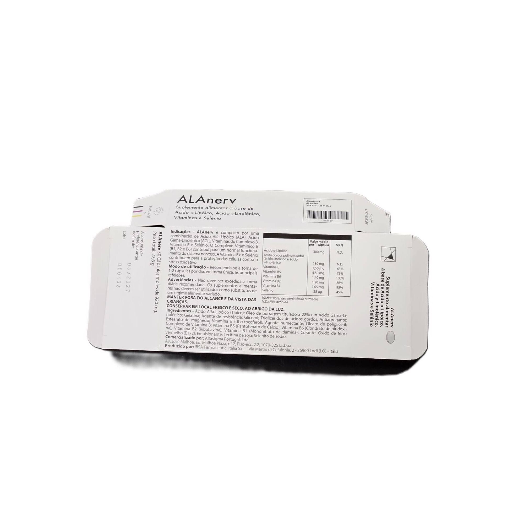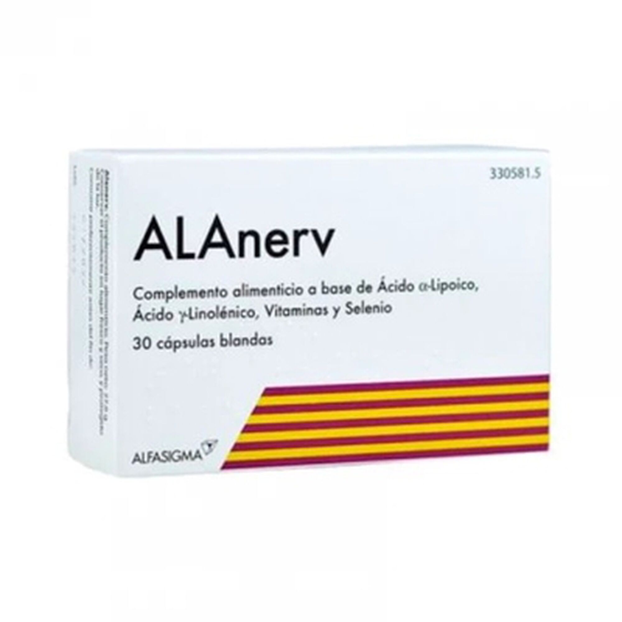 ALAnerv é um suplemento alimentar com 30 Cápsulas, à base de ácido alfa-lipóico, ácido gama-linolênico, bem como, vitaminas e selénio. Com a finalidade de contribuir para um normal funcionamento do sistema nervoso.
