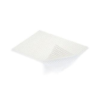 Compressas esterilizadas em gaze com parafina, para o tratamento de feridas. A impregnação é composta por: vaselina, éster de glicerol de ácidos gordos e cera. Dispositivo Médico.