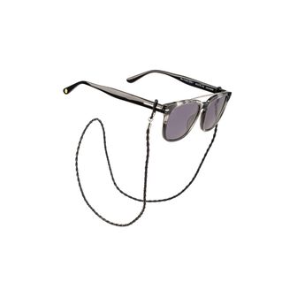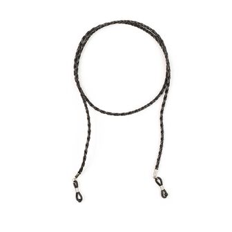 Cordão para óculos em pele preta da Wells com borrachas ajustáveis, resistentes e universais.
