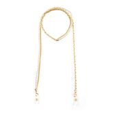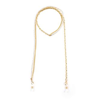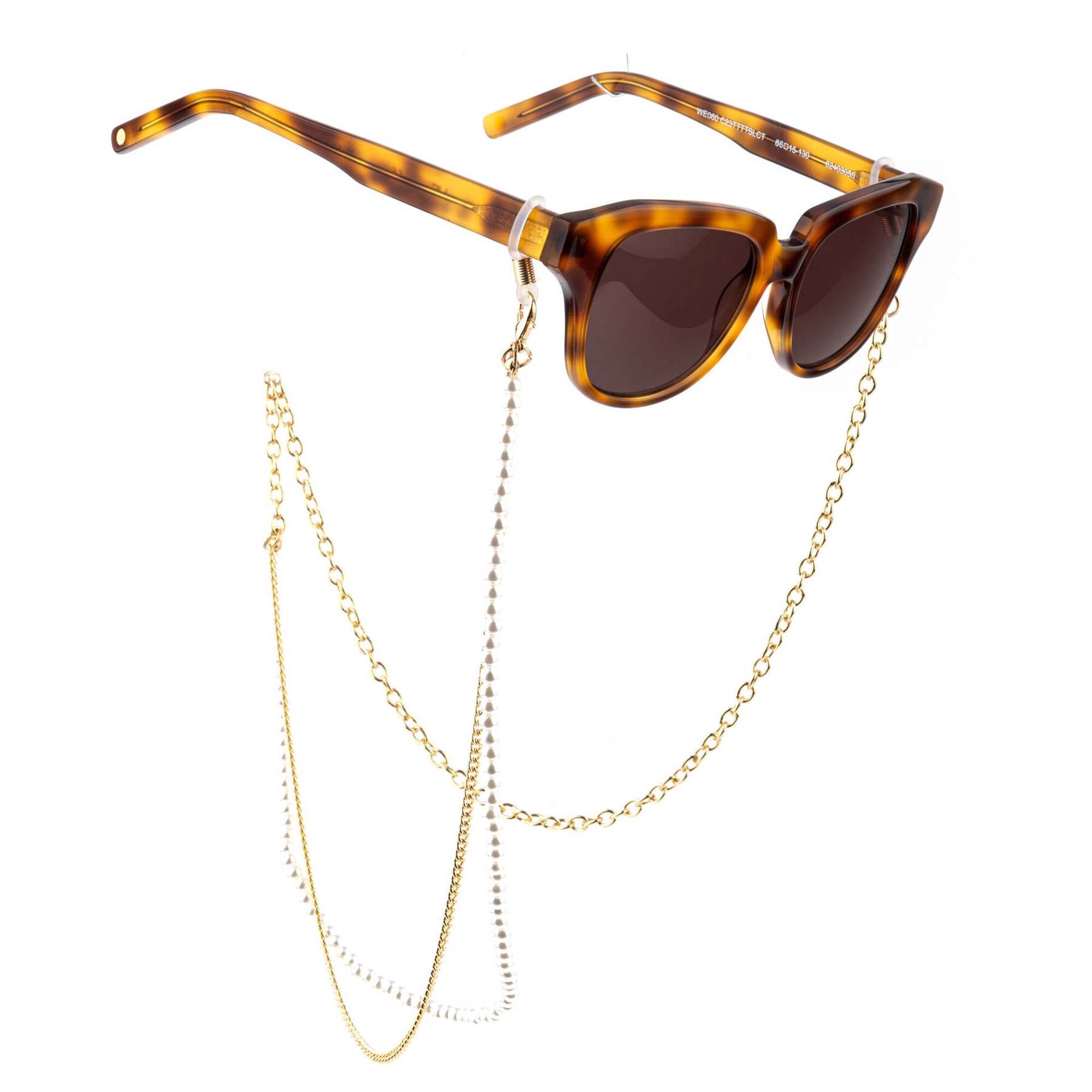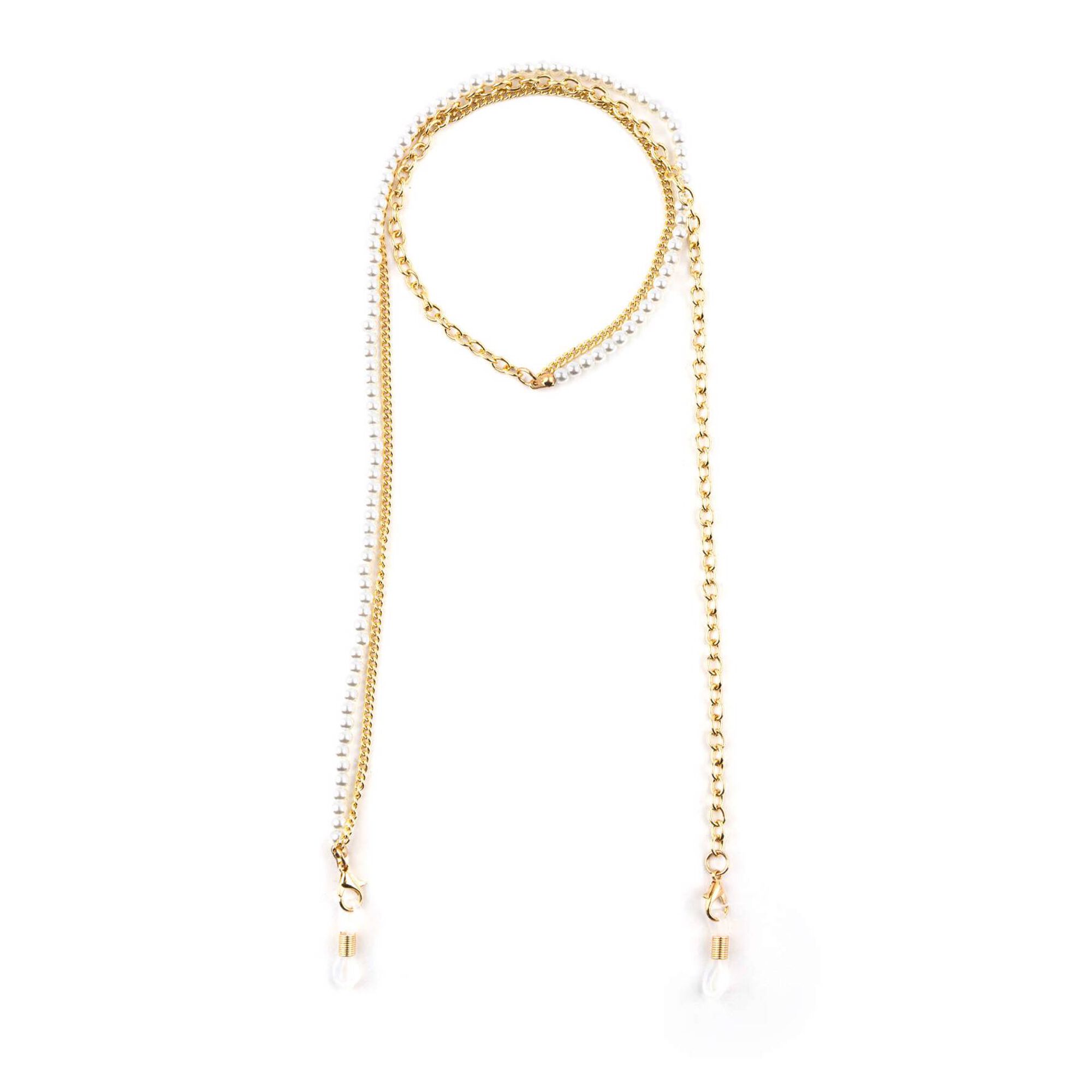 O Cordão Óculos Pérolas Dourado ajuda a segurar os óculos e deixá-los suspensos quando retira momentaneamente do rosto, sem o risco de os perder.