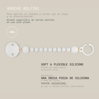 Clipe para chupeta Suavinex. Este clip permite prender as chupetas à roupa do bebé, evitando assim que caiam no chão, se sujem ou se percam.O clipe do broche, que se prende à roupa, tem um anel onde se insere a chupeta para bebés a partir dos 0 meses. Corrente de silicone macia e flexível para chupetas, numa única peça de silicone para maior segurança.