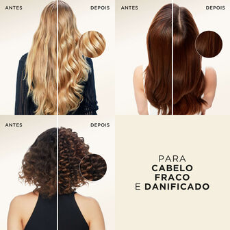 Protege da humidade, sela as pontas e combate a estática.