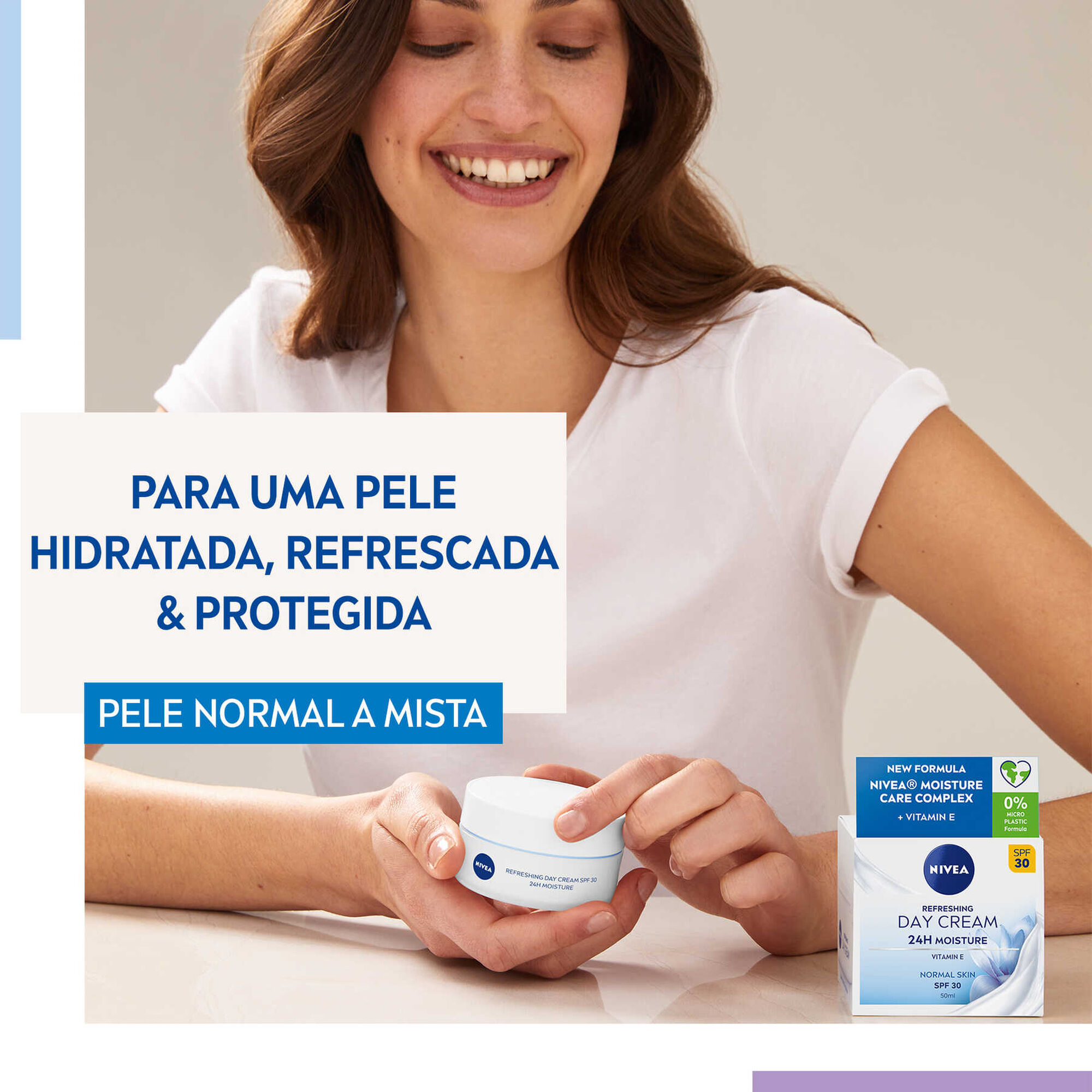NIVEA Creme de Dia Hidratante é um excelente complemento à sua rotina diária do cuidado do rosto.