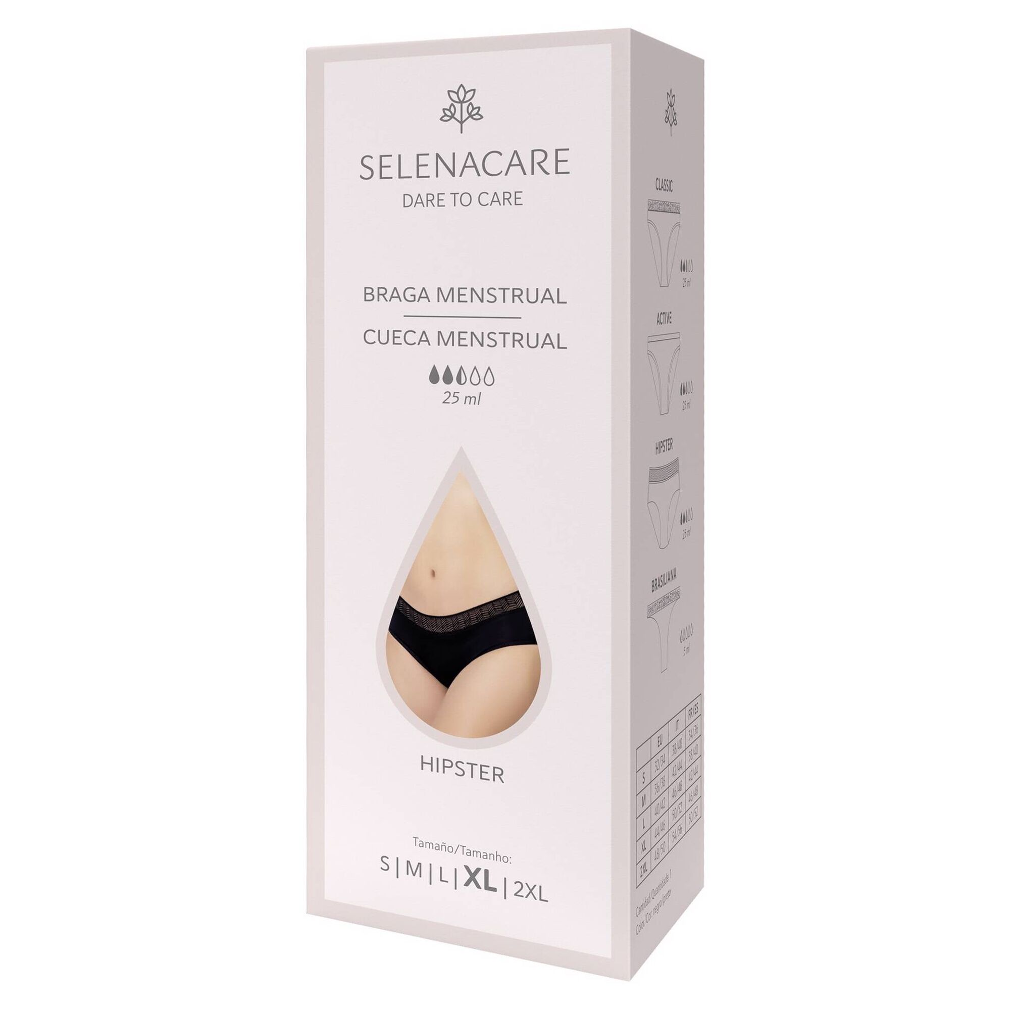 Cueca menstrual lavável e reutilizável modelo Hipster. Nível de absorção 25ml para fluxo ligeiro a moderado. Até 12 horas de proteção.