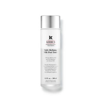 O tónico facial esfoliante Daily Refining Milk-Peel Toner da Kiehl´s esfolia suavemente a pele, proporcionando uma sensação de conforto.