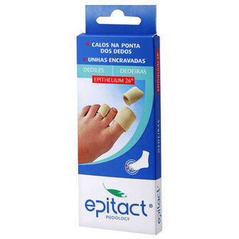 Alivia a dor e limita o desenvolvimento das calosidades na ponta dos dedos. É recomendada antes de uma longa caminhada, etc. ou no tratamento, de forma a aliviar a dor, devido à pressão exercida pelo calçado. Fácil de colocar, posiciona-se do avesso na ponta do dedo do pé e desenrola-se progressivamente. Durabilidade: um mês (aproximadamente). Dispositivo Médico.