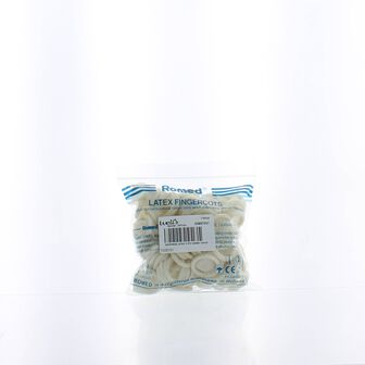 Dedeiras de látex natural enroladas, com pó, permitindo assim uma colocação mais fácil.