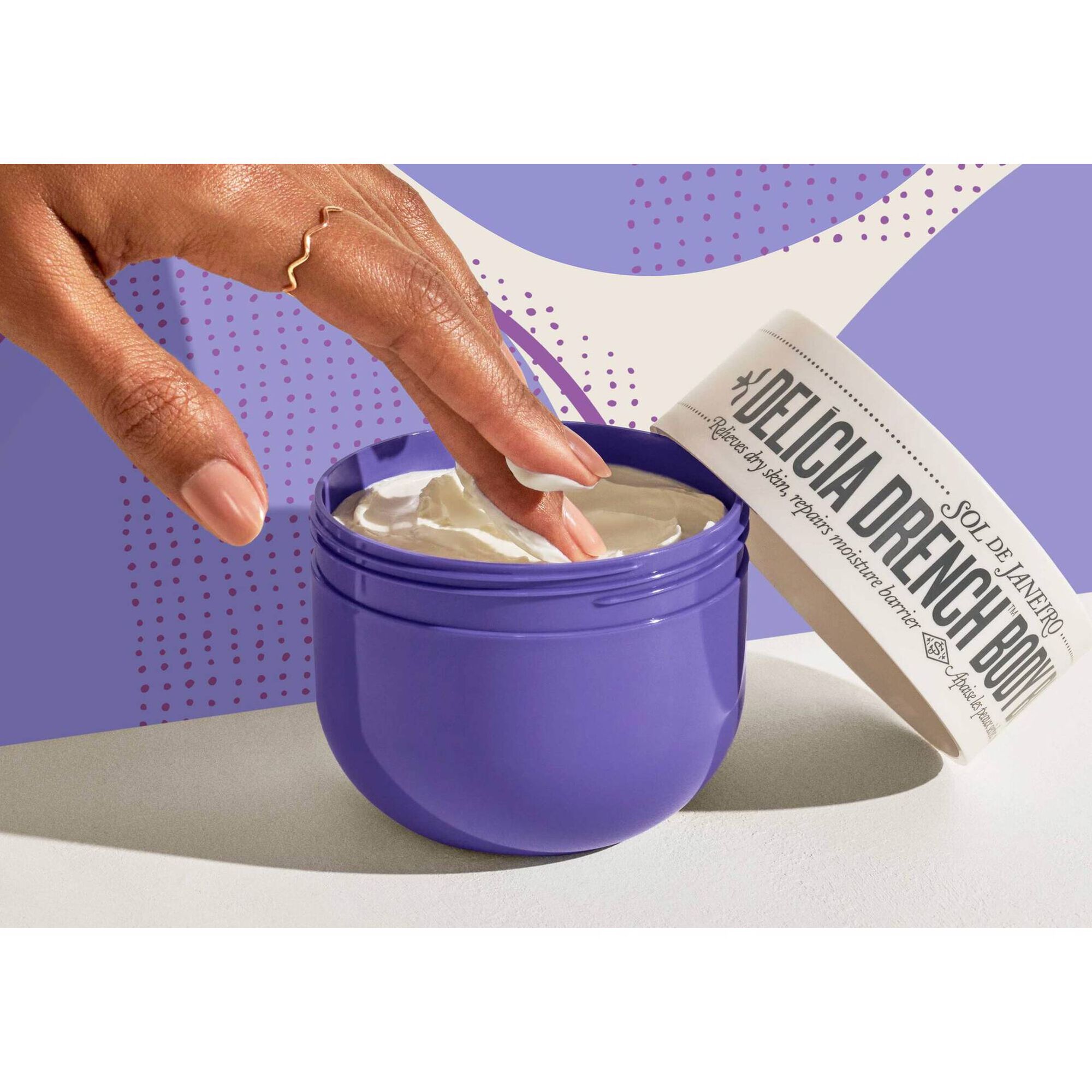 Deixe-se conquistar pela hidratação deliciosa deste creme corporal da Sol de Janeiro. Esta manteiga corporal batida e ultra-rica dá suporte à barreira da pele e penetra profundamente abaixo da superfície para reter a hidratação e aliviar a pele extremamente seca.