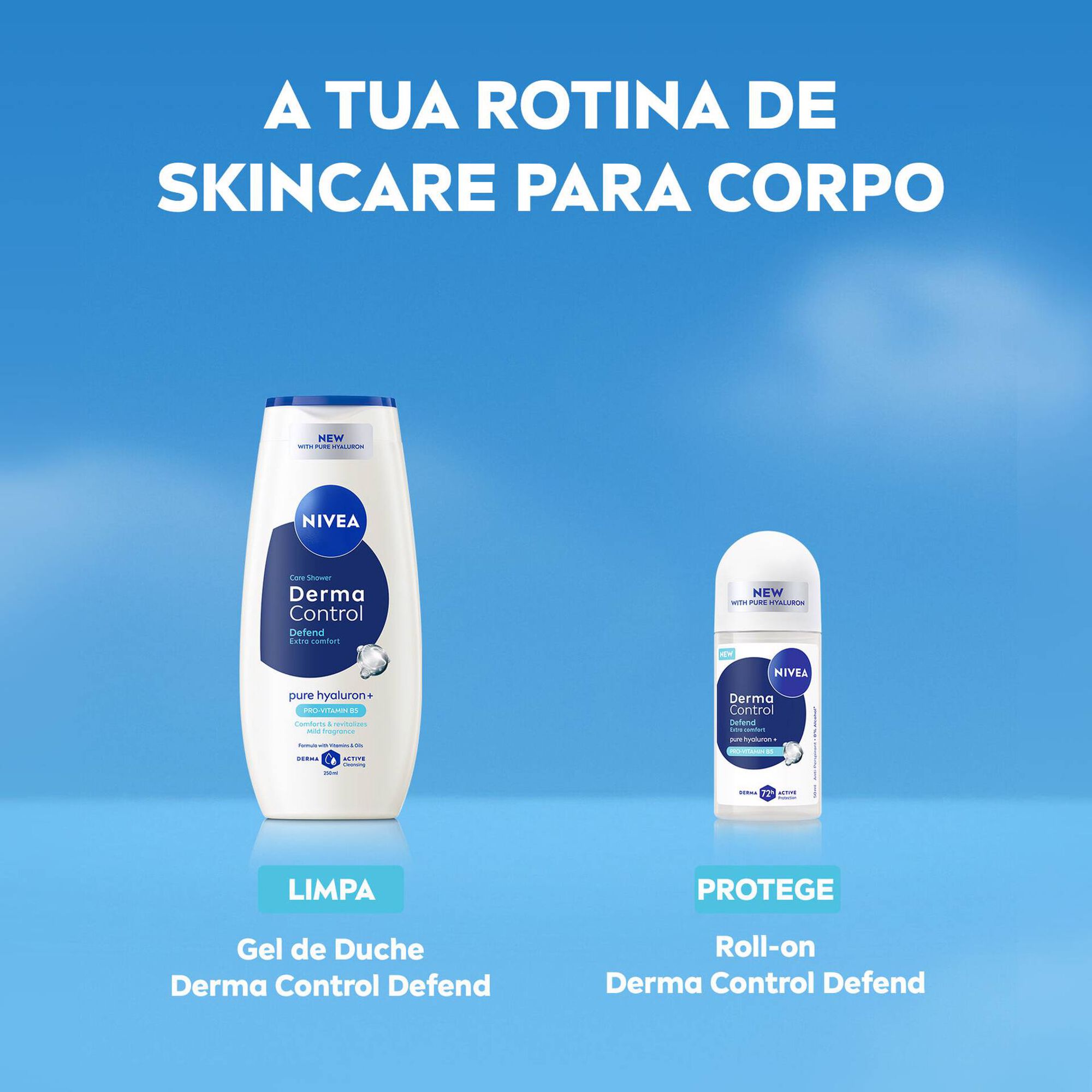 O Antitranspirante NIVEA Derma Control Defend atua contra a comichão e proporciona conforto extra para a pele das axilas. A sua fórmula, com Ácido Hialurónico Puro e Provitamina B5, protege eficazmente a pele contra irritações após a depilação e reduz o atrito da roupa, enquanto nutre a pele das axilas.