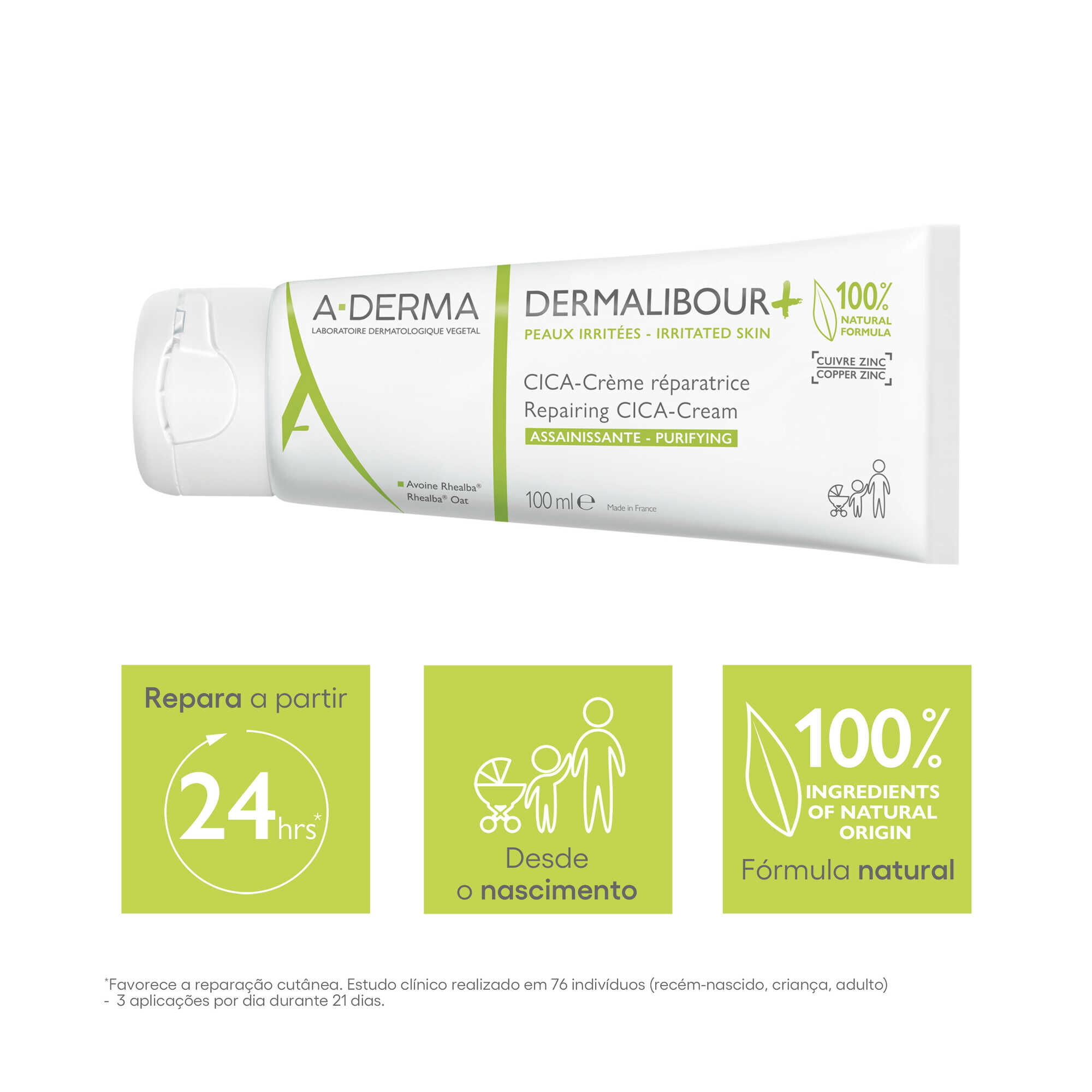 O Creme Reparador Purificante CICA DERMALIBOUR+ é utilizado para acalmar a pele irritada da sua família desde o nascimento.