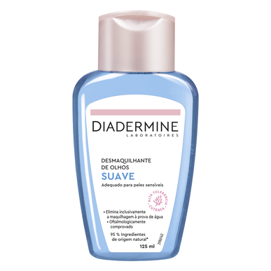 Diadermine Desmaquilhante de Olhos, é um desmaquilhante suave para os olhos que limpa enquanto cuida dos olhos e das pestanas, proporcionando suavidade e firmeza ao contorno ocular, respeitando o pH da pele.