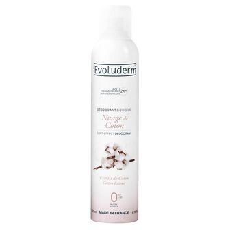 O desodorizante Nuage de Coton da Evoluderm protege a pele da transpiração e dos maus odores graças à sua eficácia de 24 horas.