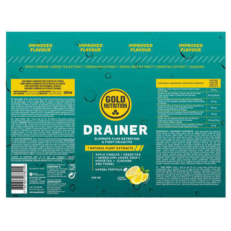 O Drainer da GoldNutrition é uma fórmula herbal concentrada em formato líquido, com sabor a limão, que combina um conjunto de plantas cuidadosamente selecionadas com vinagre de maçã. Foi desenvolvido para apoiar a redução da retenção de líquidos, diminuir o volume corporal e o inchaço abdominal, promovendo a drenagem e a desintoxicação do organismo.