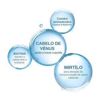 Na sua fórmula: SAMAMBAIA para ajudar a retardar a queda de cabelo1 e manter os cabelos e as unhas saudáveis, MIRTILO para ajudar a favorecer a microcirculação do couro cabeludo, aminoácidos de ENXOFRE e vitamina B6 para auxiliar a síntese normal de cisteína, BIOTINA (vitamina B8) para manter os cabelos fortes e resistentes e FERRO para ajudar a reduzir a fadiga.