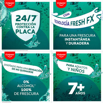 O Elixir Menta Suave Proteção 24h Plax da Colgate remove eficazmente a placa bacteriana e fornece proteção 24 horas por dia.