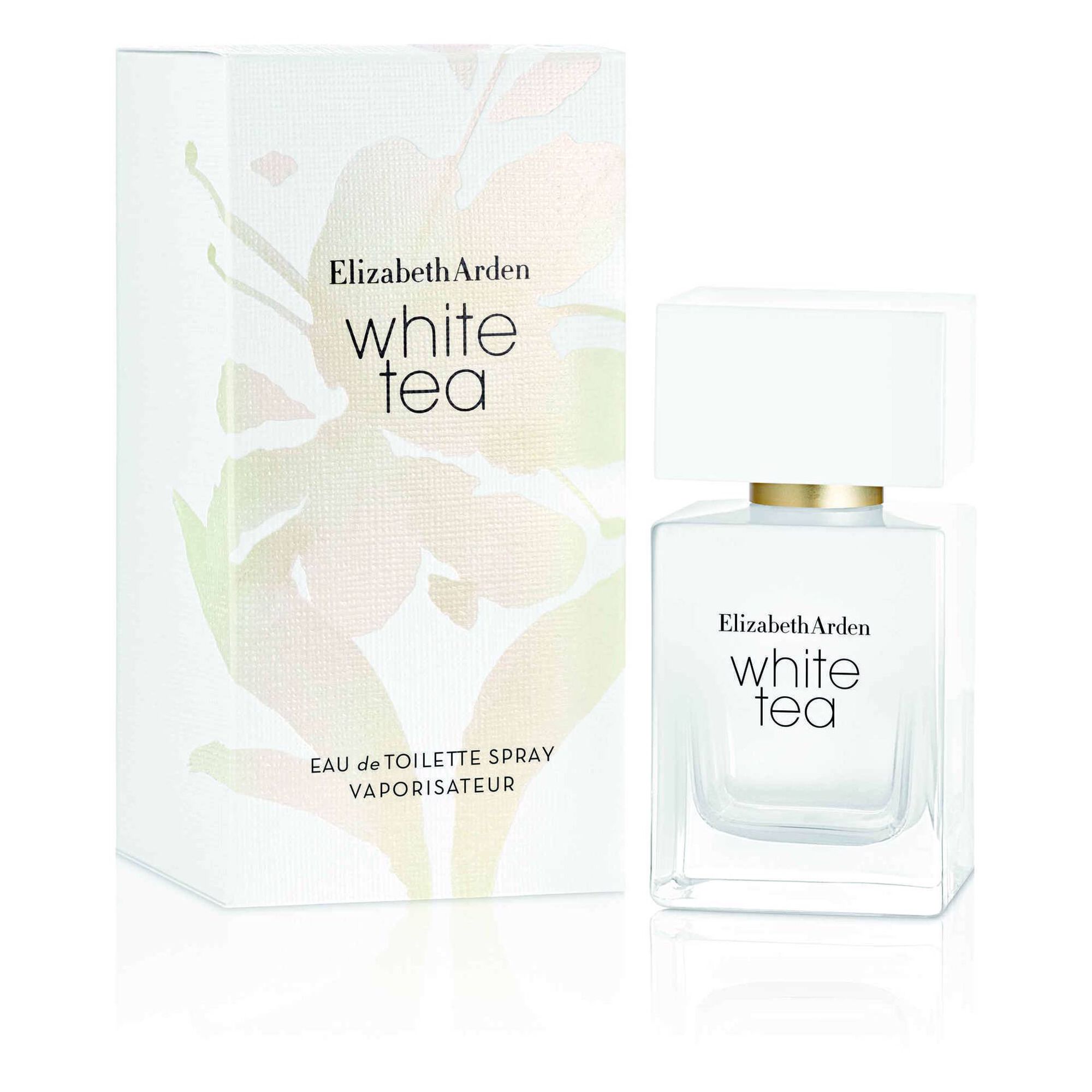White Tea de Elizabeth Arden é uma fragrância de Almiscarado Amadeirado Floral para mulheres. As notas de topo do Chá Branco de Elizabeth Arden são tangerina laranja, salva esclareia, samambaia e notas marinhas, as notas de coração são chá branco, erva-mate e íris branca, as notas de base são âmbar, almíscar ambrette, fava tonka e madeiras exóticas.
