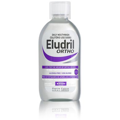 Eludril Ortho - Colutório Ortodôntico Diário facilita a higiene dentária às pessoas com aparelho ortodôntico. Refresca o hálito e ajuda a manter dentes e gengivas saudáveis. Contém Fluorinol®, que ajuda a prevenir cáries e manchas brancas em torno de aparelhos, combatendo o ataque ácido e a formação de placas. Também não mancha aparelhos removíveis. É adequado para adultos e crianças a partir dos 10 anos.