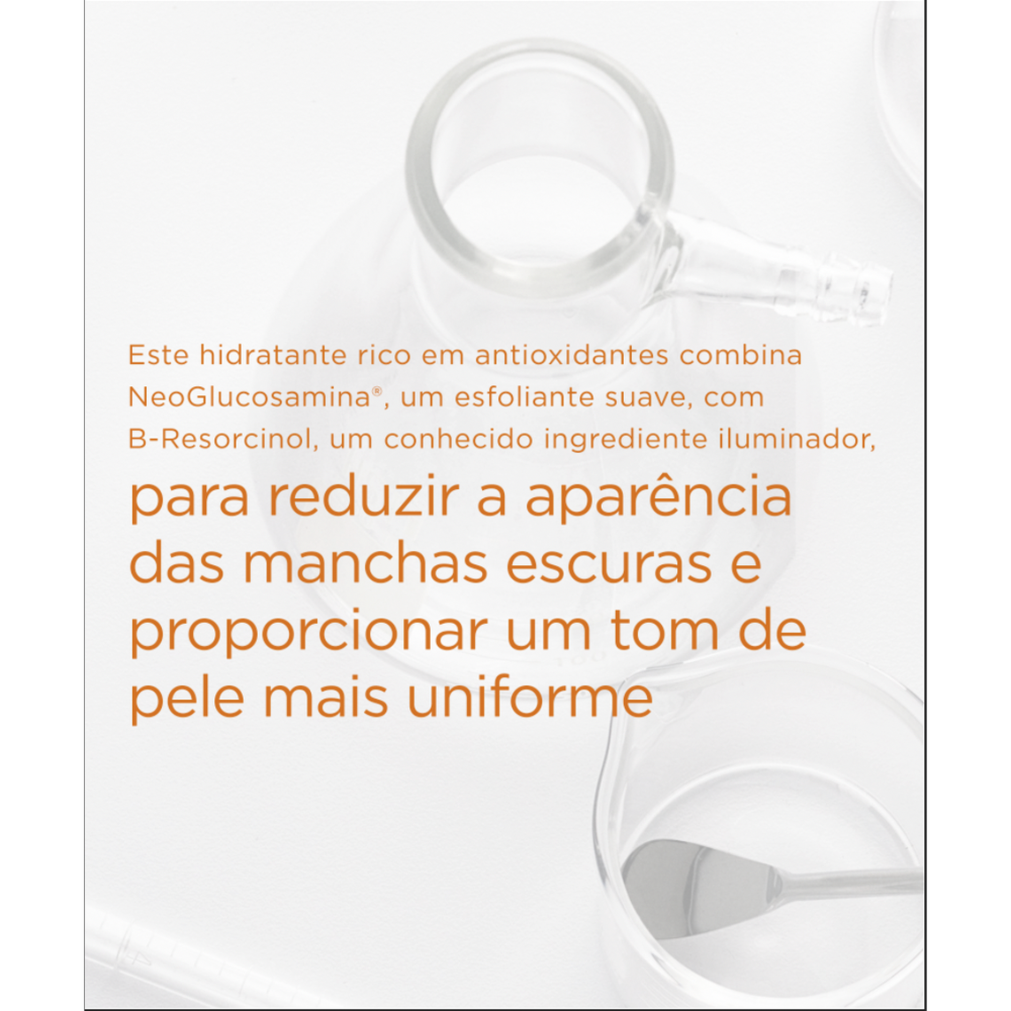 A sua fórmula única proporciona luminosidade e atua como despigmentante, reduzindo manchas. Não contém óleo, não comedogênico.