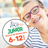 A escova de dentes elmex® JÚNIOR foi desenvolvida para facilitar a escovagem na fase em que os dentes de leite estão a ser substituídos pelos definitivos.