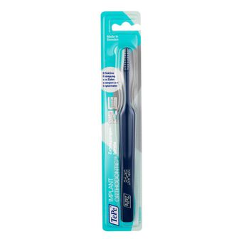 Escova de dentes com um pescoço longo e estreito com uma cabeça de escovagem extra fina. Ideal para a limpeza dos implantes e em torno dos aparelhos ortodônticos.