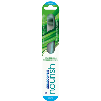 A Escova Sensodyne Nourish Limpeza Saudável foi desenhada para uma limpeza eficaz dos dentes sensíveis.