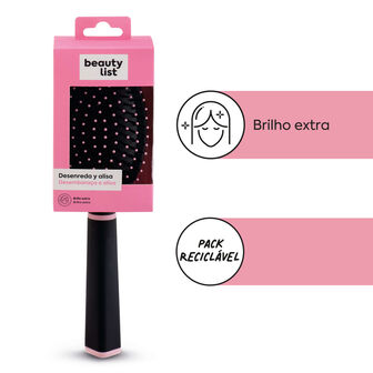 Escova de cabelo redonda que desembaraça e alisa, ideal para obter brilho extra. As suas pontas arredondadas proporcionam uma massagem capilar sem danificar o couro cabeludo. Para uma escovagem suave e uniforme.