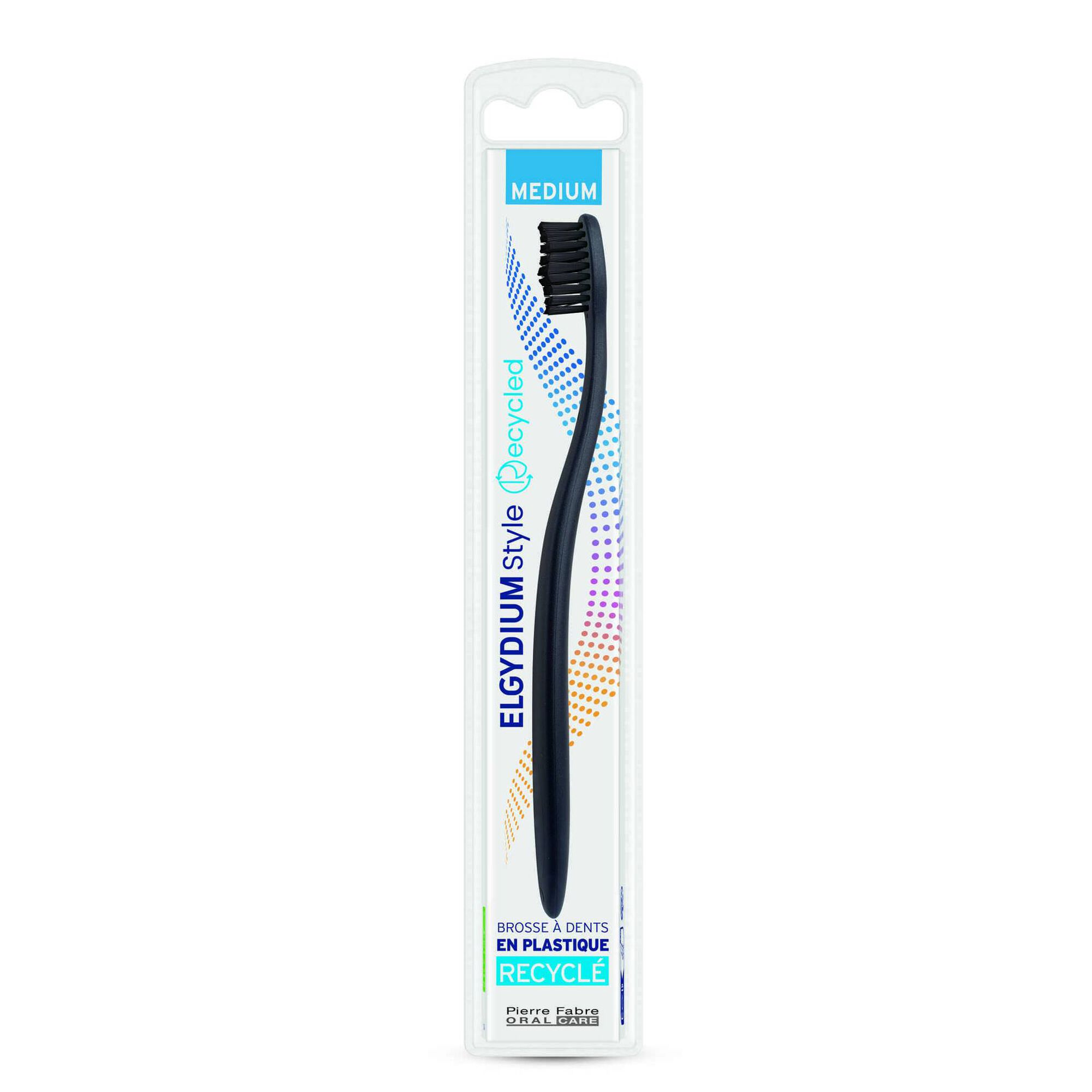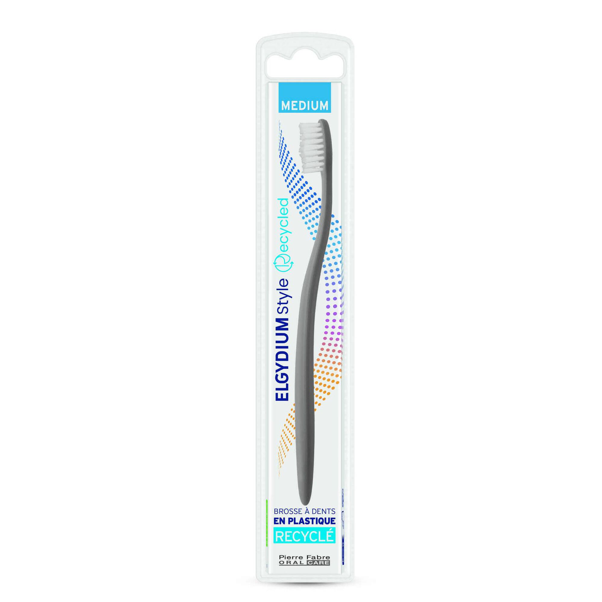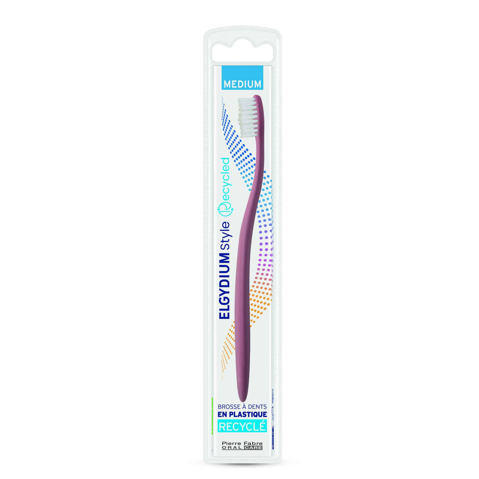 Elgydium Style é uma escova de dentes com cabo de plástico reciclado que permite uma escovagem confortável. Com cerdas suaves ou médias, de origem 100% natural, e com um corte de onda que respeita os dentes e gengivas. Disponível em 4 cores e a sua embalagem é em cartão reciclado e reciclável.
