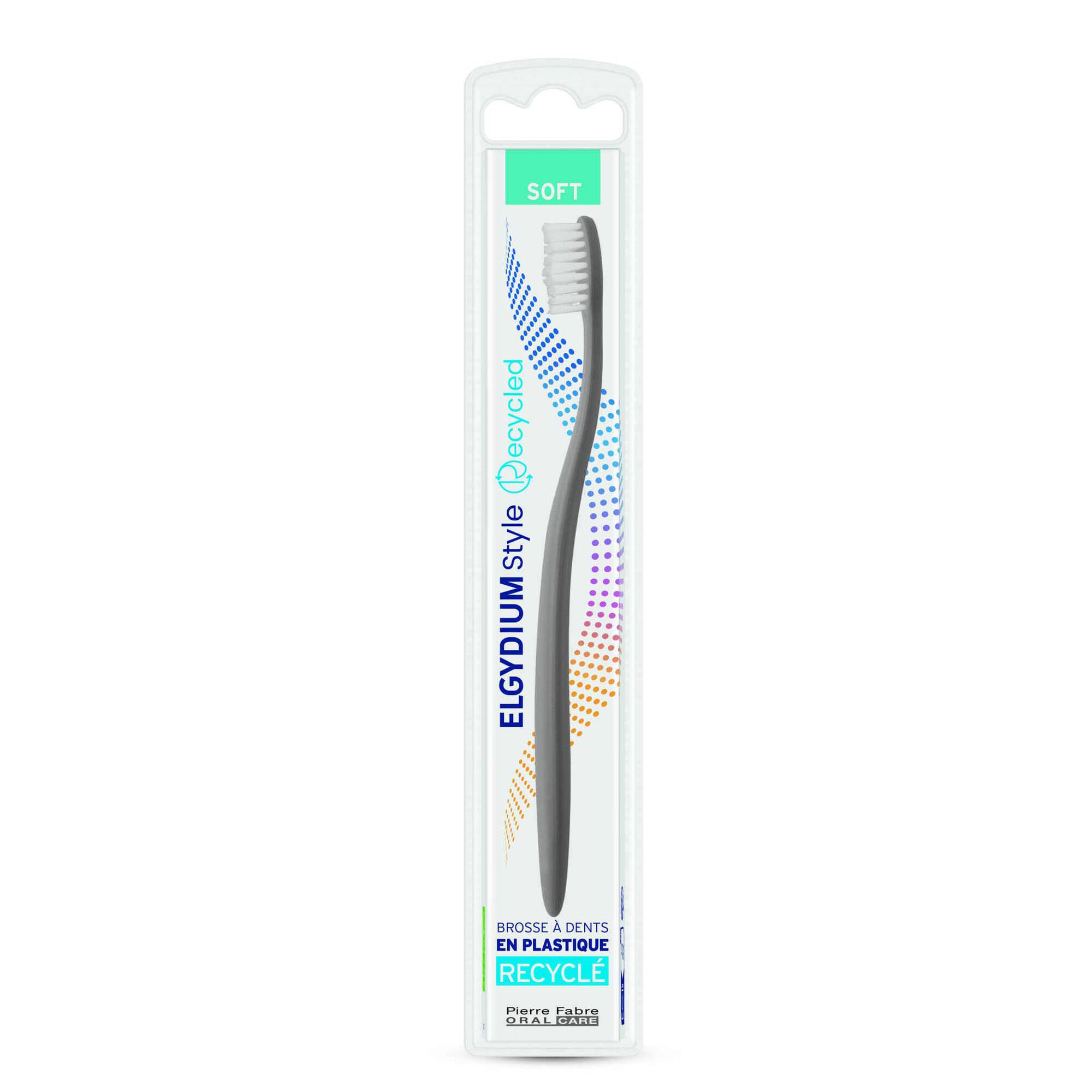 Elgydium Style é uma escova de dentes com cabo de plástico reciclado que permite uma escovagem confortável. Com cerdas suaves ou médias, de origem 100% natural, e com um corte de onda que respeita os dentes e gengivas. Disponível em 4 cores e a sua embalagem é em cartão reciclado e reciclável.