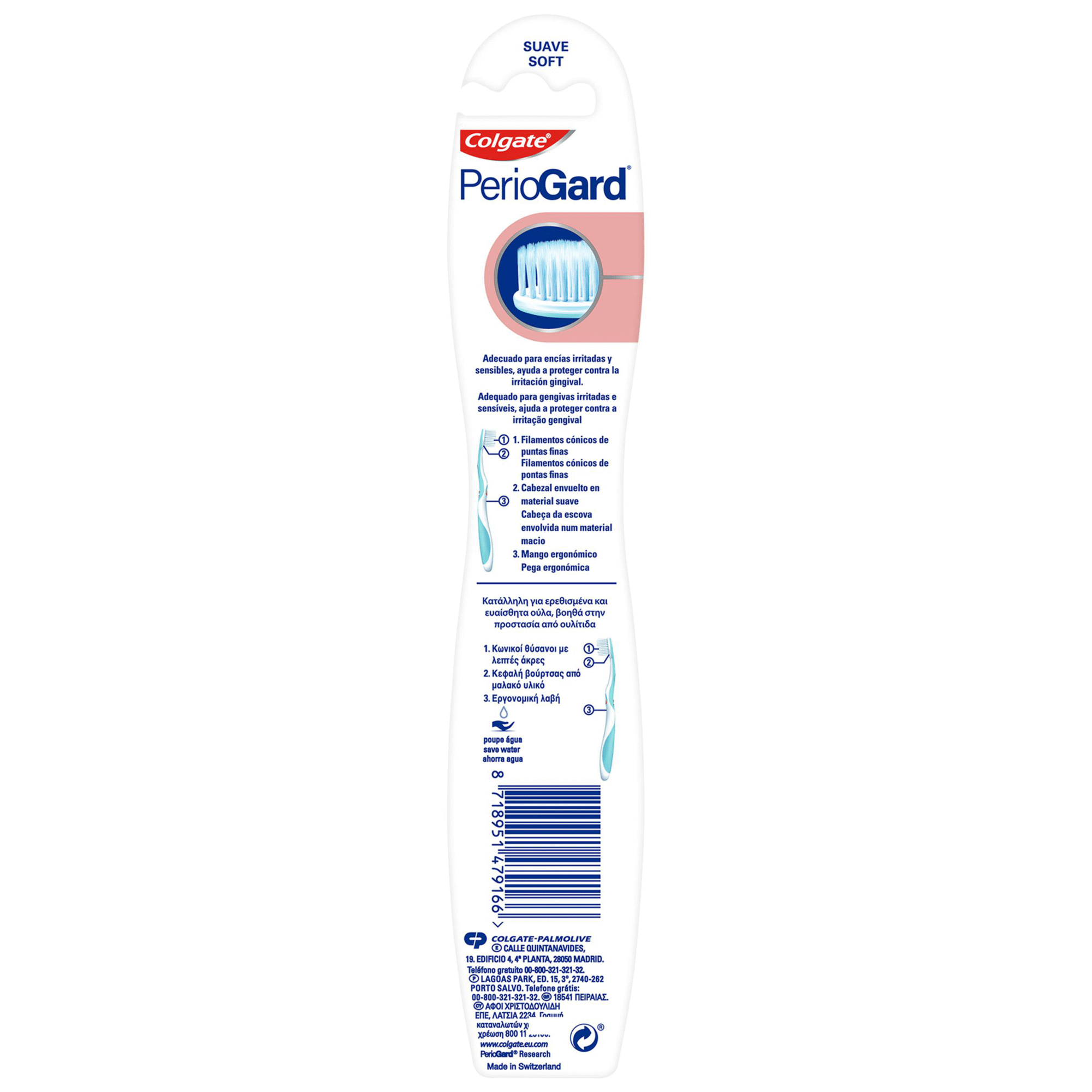 A escova de dentes suave PerioGard Cuidado das Gengivas é uma escova de dentes de filamenos suaves.