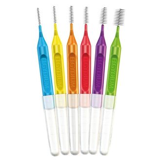 Escovilhões Clinic Mono Compact são escovilhões concebidos para higienizar os espaços interdentários e impedir a formação de placa bacteriana entre os dentes. Como os espaços interdentários não são todos iguais, os escovilhões têm seis tamanhos, identificados por cores diferentes. Têm ainda cerdas bicolores: brancas para revelar as gengivas sensíveis em caso de sangramento, e pretas, mais finas, para facilitar a inserção da escova e visualizar a eliminação da placa bacteriana.