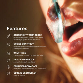 CRUISE CONTROL - aumenta automaticamente a intensidade quando o vibrador de sucção é pressionado com força contra o corpo para um prazer controlado e consistente, sempre.