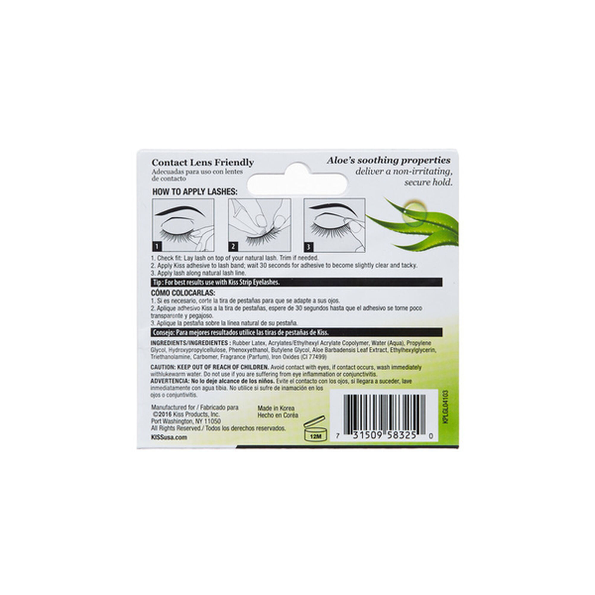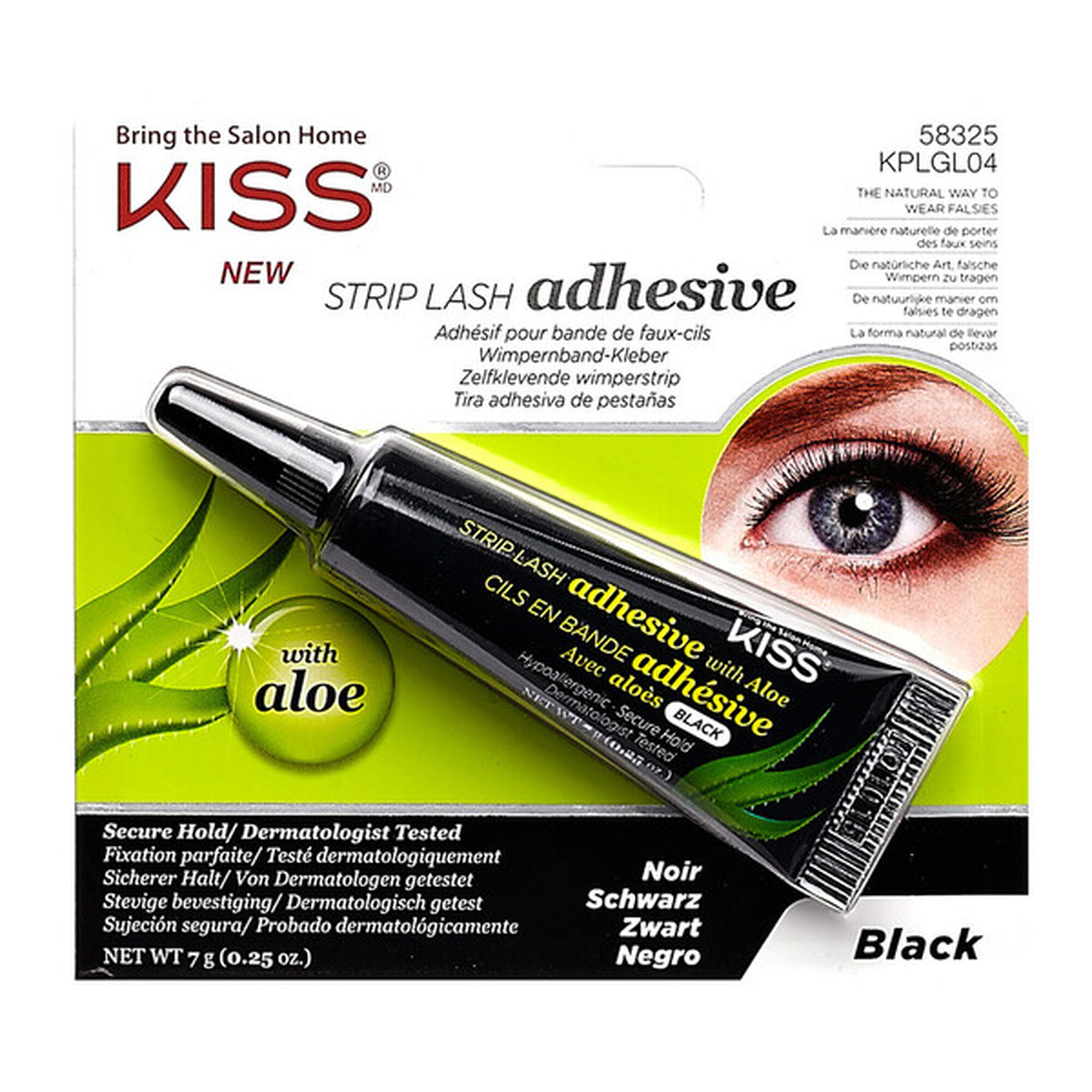 KISS Strip Lash Adhesive-Black duplica como eyeliner. Obtém um aspecto de pestana de longa duração com uma fixação forte e uma fórmula suave. Fixe as suas pestanas mais longas e cheias com cola aloe-infused com forte capacidade de retenção.