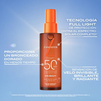 Agora também ajuda a reparar os danos causados pelo sol. Com um acabamento seco e acetinado, proporciona um bronze rápido, intenso e perfeito em metade do tempo de exposição solar.