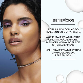 - Aumenta imediatamente a hidratação em 196%* e melhora a hidratação ao fim de 8 horas em 131%*