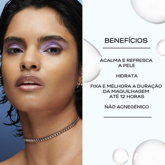 Spray fixador multifunções, isento de álcool, que hidrata, prepara, fixa e refresca a maquilhagem.