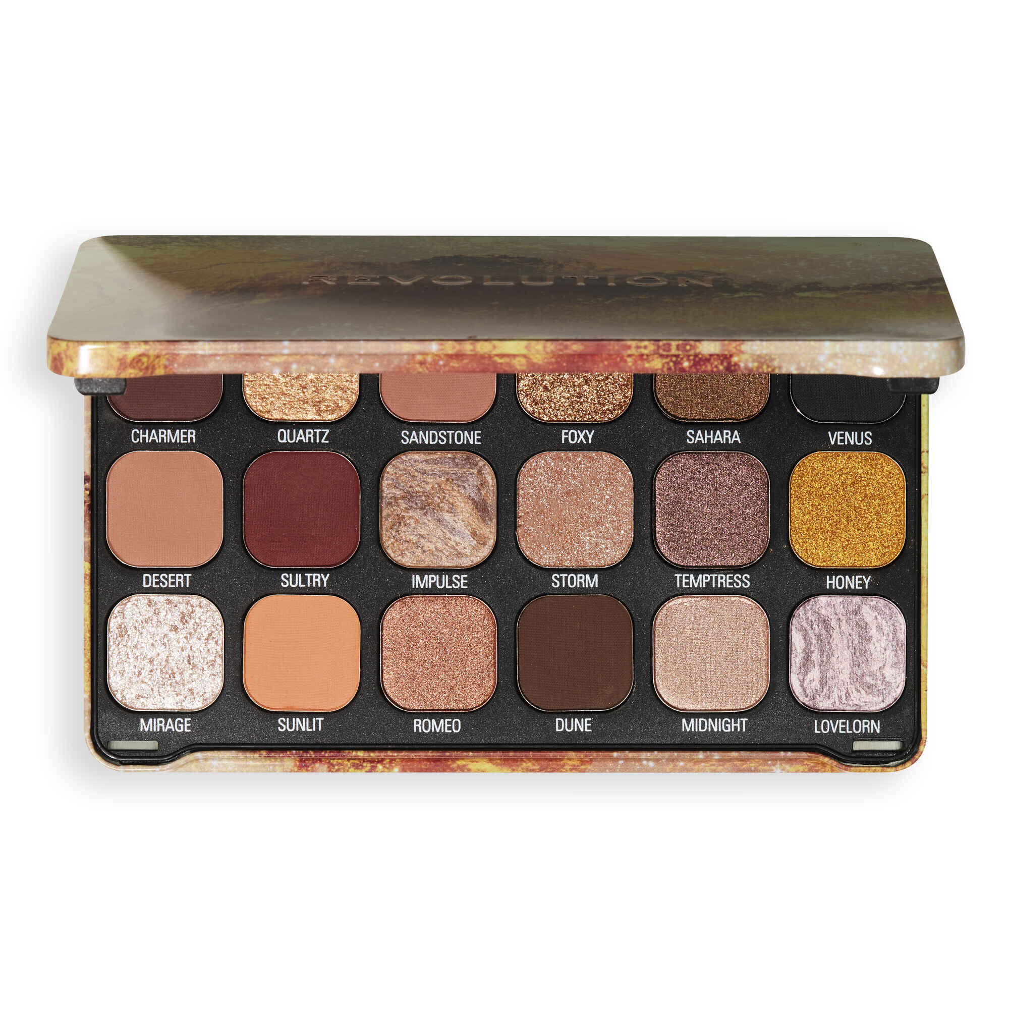 Esta paleta da Makeup Revolution traz 18 tons deslumbrantes, combinando brilhos suaves com sombras mate vibrantes e impactantes.