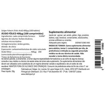 Solgar® ÁCIDO FÓLICO 400μg (como L-metilfolato de cálcio) é um suplemento alimentar que fornece ácido fólico, uma das vitaminas do complexo B. O folato contribui para o crescimento do tecido materno durante a gravidez e para a formação normal do sangue, contribui também para a redução do cansaço e da fadiga.