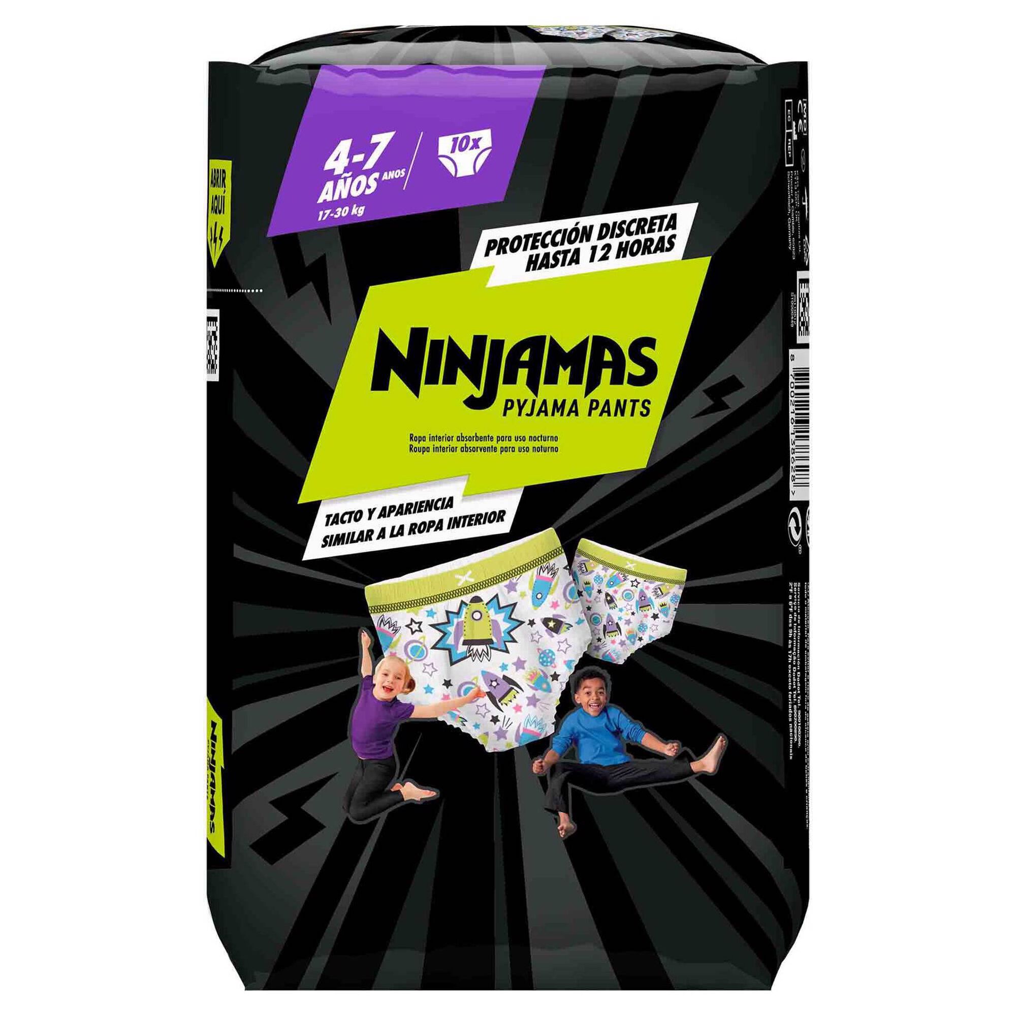 A Fralda Cueca Bebé Ninjamas possui uma Tecnologia de Absorção Instantânea que absorve a humidade instantaneamente para uma proteção poderosa como nunca viu.