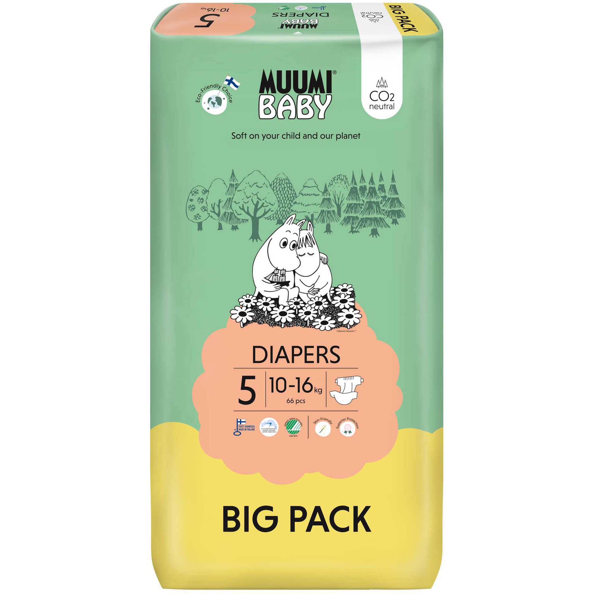 Muumi Baby a escolha segura para o bebé. A pele sensível do bebé precisa de uma fralda que não agrida a pele e que não contenha substâncias químicas desnecessárias, como loções, aromas ou cloro. A produção das fraldas Muumi Baby 10-16kg Tam 5 é ecologicamente responsável.