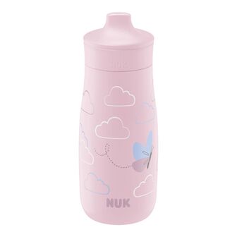 NUK Mini-Me é um sistema que cresce com a criança. Garrafa em plástico rígido resistente a quebras com diferentes tamanhos/capacidades. Escolha entre o bocal "Sip" fixo e o bocal "Flip" dobrável.
