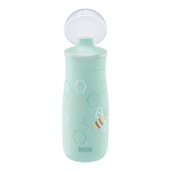 NUK Mini-Me é um sistema que cresce com a criança. Garrafa em plástico rígido resistente a quebras com diferentes tamanhos/capacidades. Escolha entre o bocal "Sip" fixo e o bocal "Flip" dobrável.