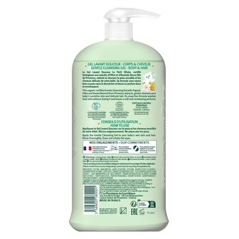 Certificado BIO pela Ecocert, o gel de duche limpa suavemente a pele sensível e os cabelos delicados do seu bebé.