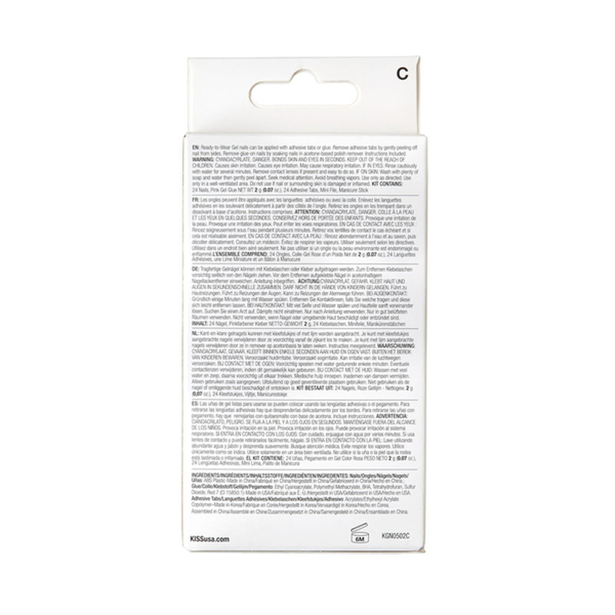 REMOVER: Não forçar ou arrancar a unha. Aparar e limar a superfície para perturbar a camada superior de proteção. Mergulhar as unhas em KISS All in One removedor de unhas artificial ou removedor de acetona até ficarem macias. Limpar as unhas amolecidas e colar.