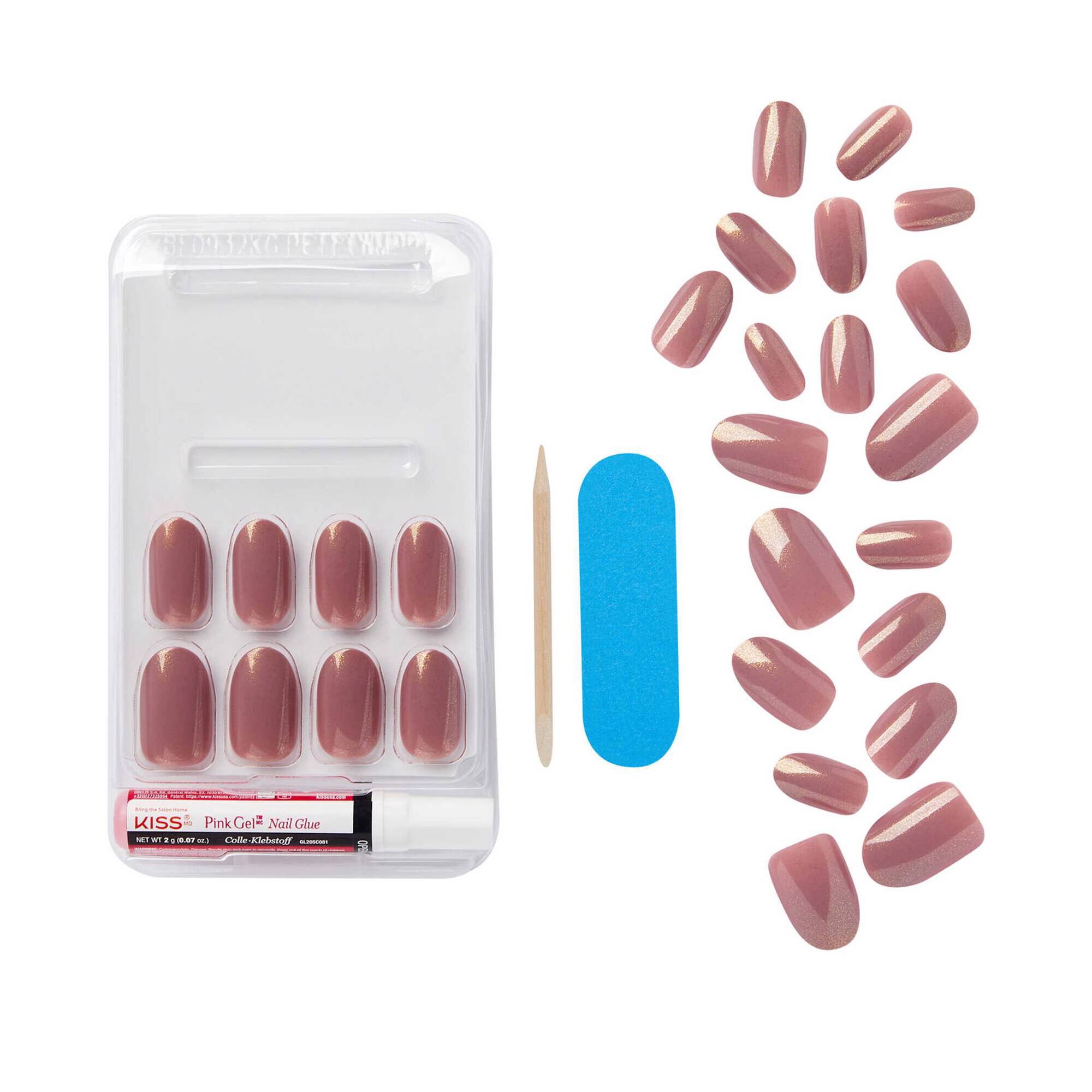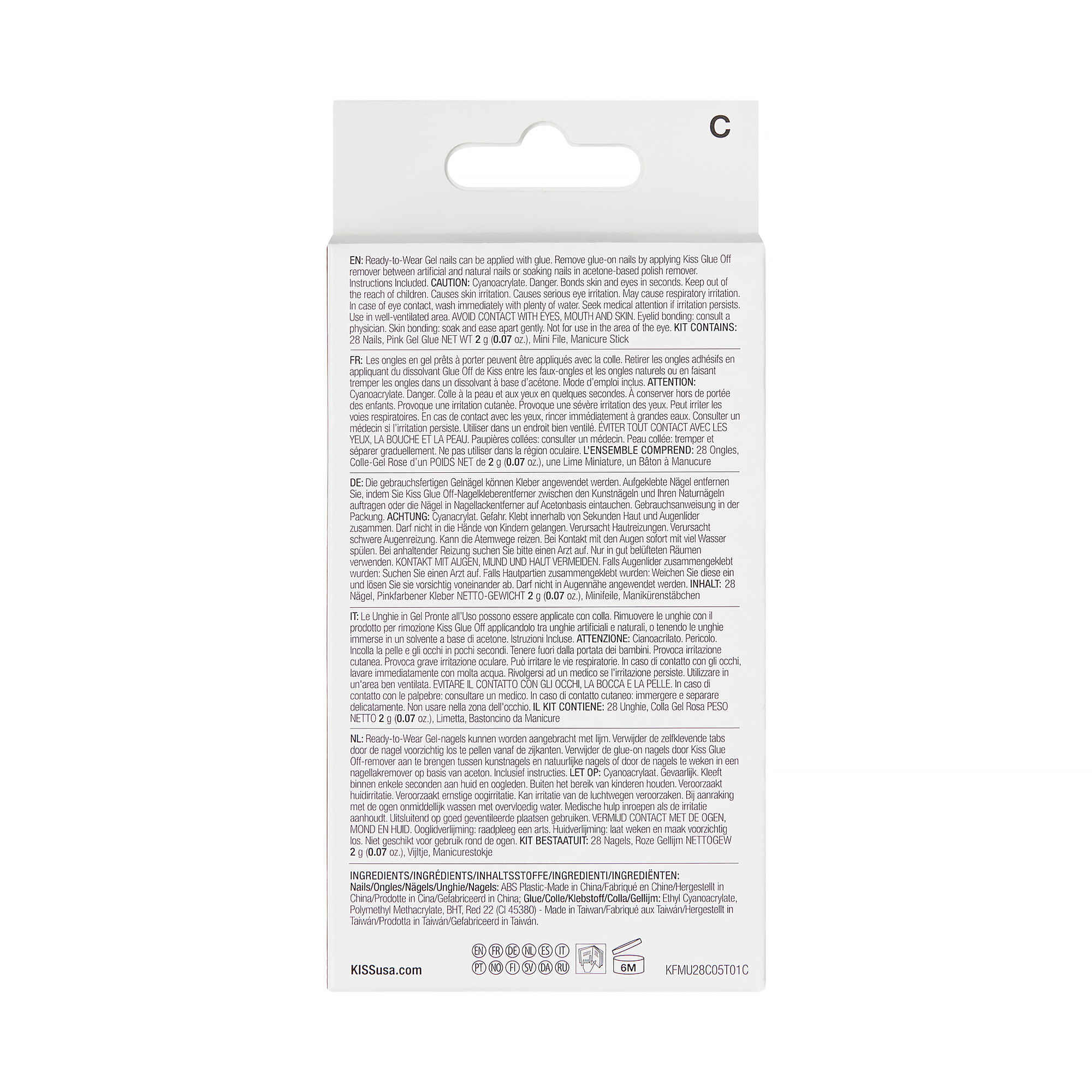 Contém 28 unhas de comprimento curto, em forma de quadrado, 28 mega abas adesivas, cola de gel cor-de-rosa (2g), stick de manicure e mini lima.