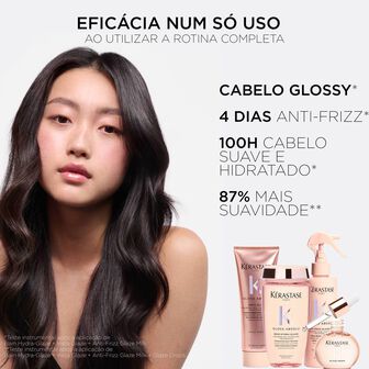 Para melhores resultados, combinar Bain Hydra-Glaze com os outros produtos da gama Gloss Absolu, como Insta Glaze, para um resultado glossy.