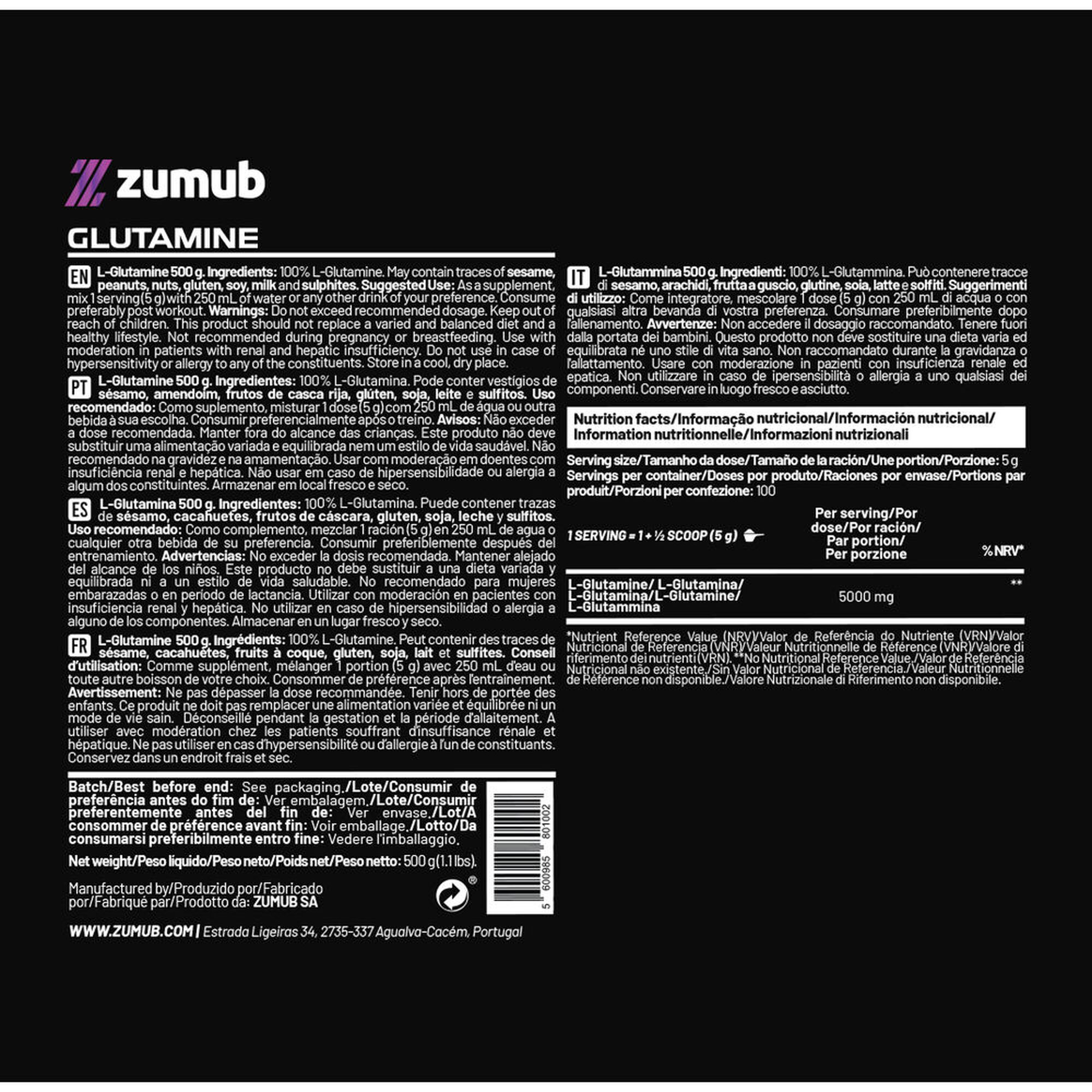 Todo o construtor precisa de material. Permita que o corpo obtenha a matéria prima com o Zumub Glutamine Powder, o aliado perfeito, com a melhor qualidade, a um preço muito competitivo.