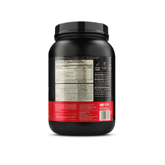 O Gold Standard 100% Whey é um pó proteico pronto a misturar, com edulcorantes e sabor a morango.