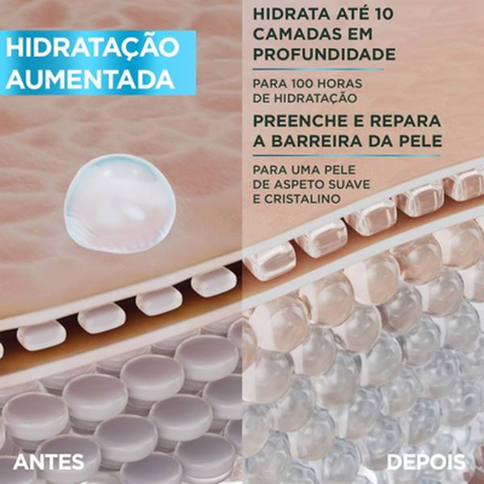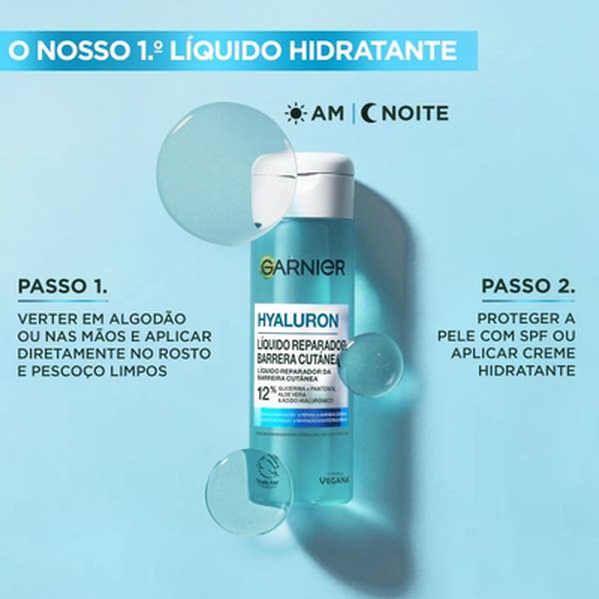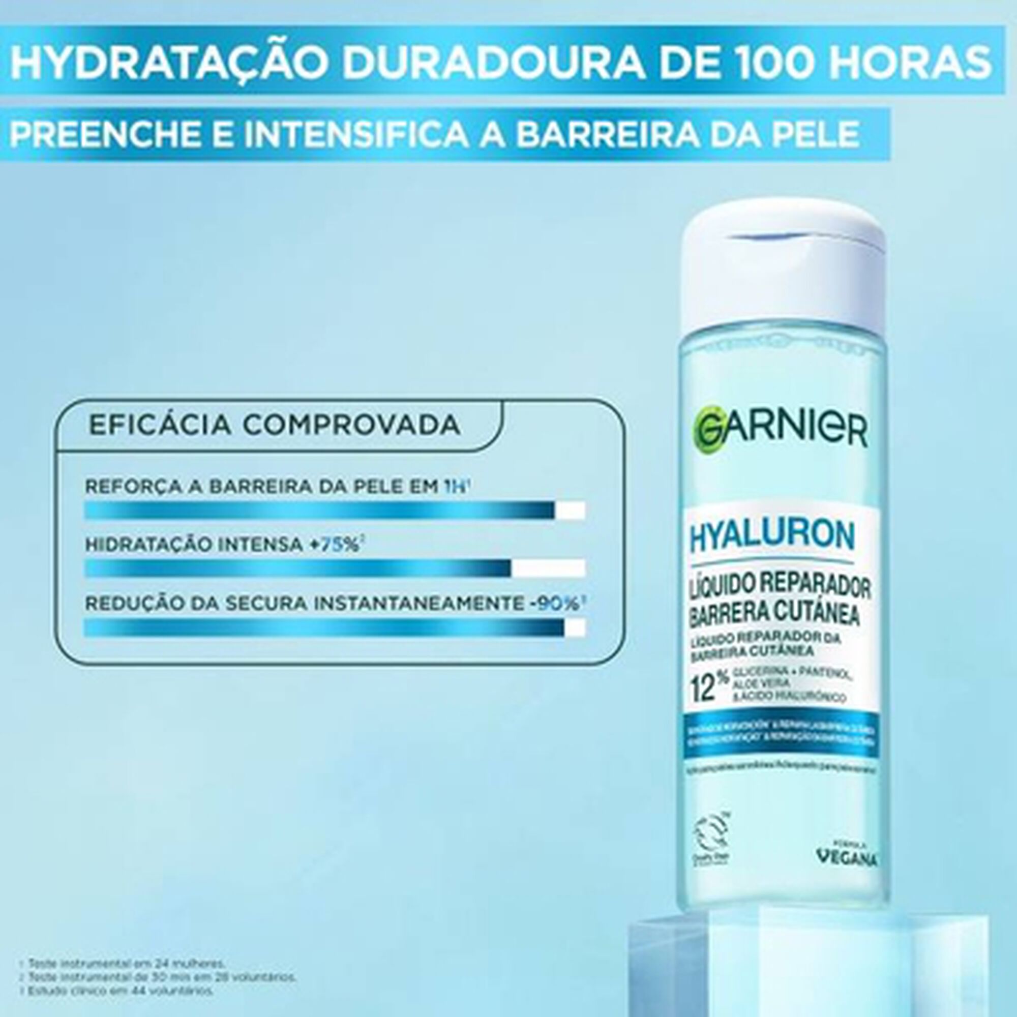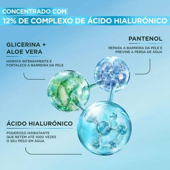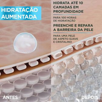 [ÁCIDO HIALURÓNICO], proporcionando 100 horas de hidratação e reparação da barreira cutânea, numa fórmula leve e aquosa.