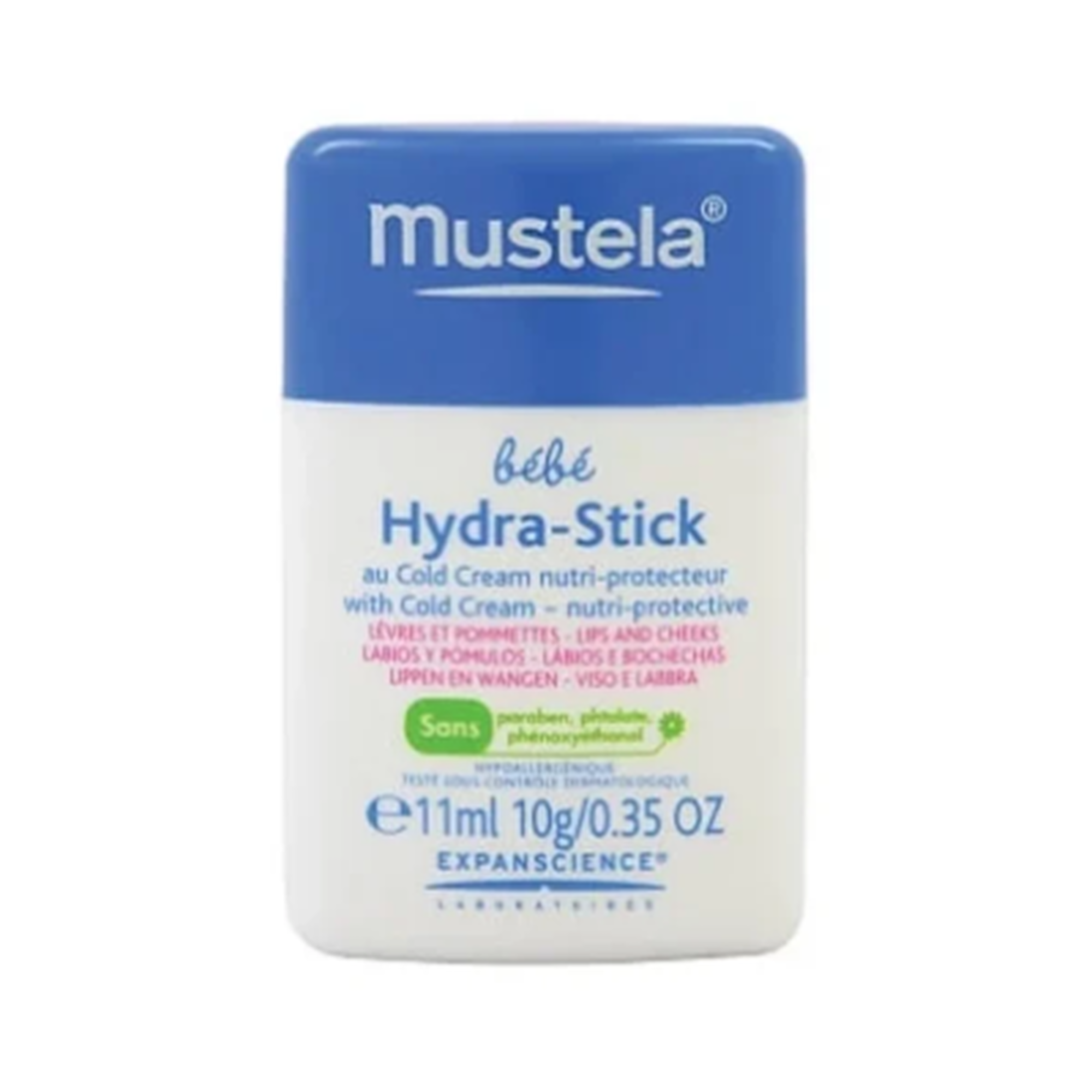 Especificamente formulado para a pele seca dos bebés desde o nascimento, o Hydra-Stick com Cold Cream Nutri-Protetor Mustela Bebé foi desenvolvido para a hidratação das zonas mais expostas do rosto (lábios, nariz, face, maçãs-do-rosto):